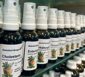 Die grosse Auswahl an Pflanzentinkturen, Bachblüten und Schüssler Salzen ermöglicht uns, individuelle Mischungen für Patienten herzustellen. Unser umfassendes Kräutersortiment dient uns dazu, spezifische Teemischungen für Sie zusammenzustellen.